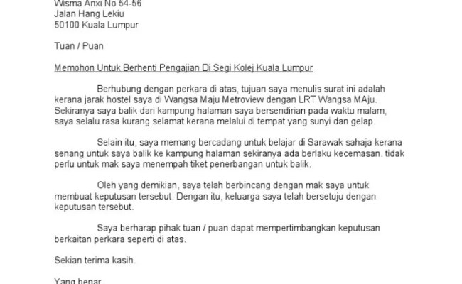 Contoh surat rasmi berhenti sekolah tingkatan 6. Berhenti sekolah tingkatan enam, contoh surat rasmi permohonan berhenti sekolah, .